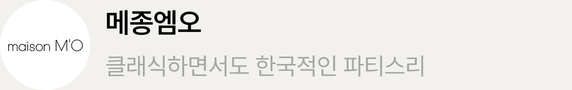 프랑스와 일본에서 쌓은 셰프의 노하우를 바탕으로, 정통 제과부터 독창적인 디저트까지 다채롭게 선보인다. 최근, 세컨 브랜드 ‘비스퀴테리 엠오’를 런칭해 친근하고 일상적인 구움과자를 제안한다.