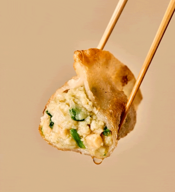 Q. 만두피에 쌀가루와 콩가루를 사용한 이유도 궁금합니다. 쌀가루는 뽀얗고 쫀득한 식감을, 콩가루는 고소함을 더해줍니다. 튀겼을 때도 더 빠삭해지고요. 타사와 다른 만두피를 원했죠. 다만 접합성이 떨어져 불량률이 높아지는 단점이 있어요. 비용적으로는 손실이지만, 그럼에도 식감만큼은 포기할 수 없었습니다.